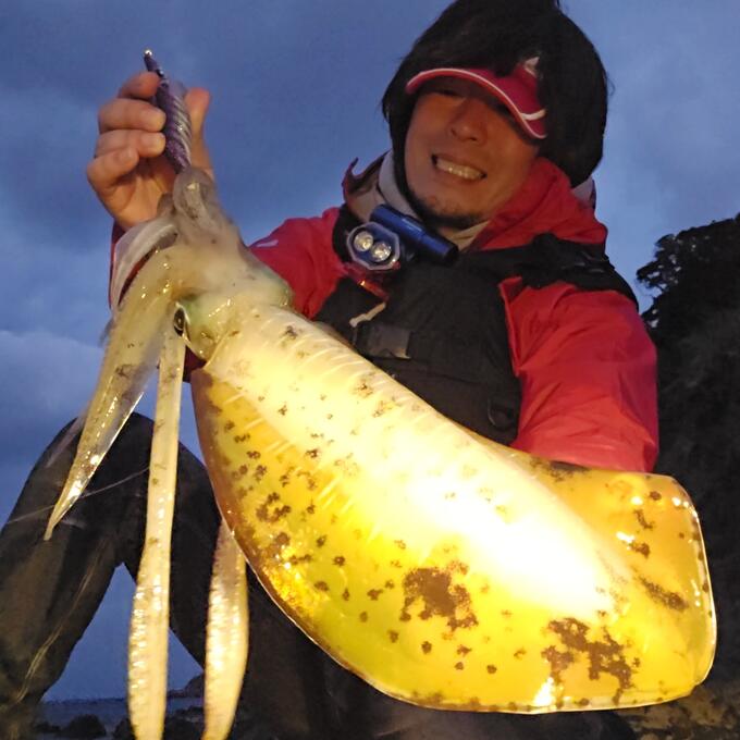 朝マズメ一瞬の時合いに大型2連発。エギはEQ3.5号。 根掛かり覚悟の底攻めでようやく反応してくれたって感じでした。
