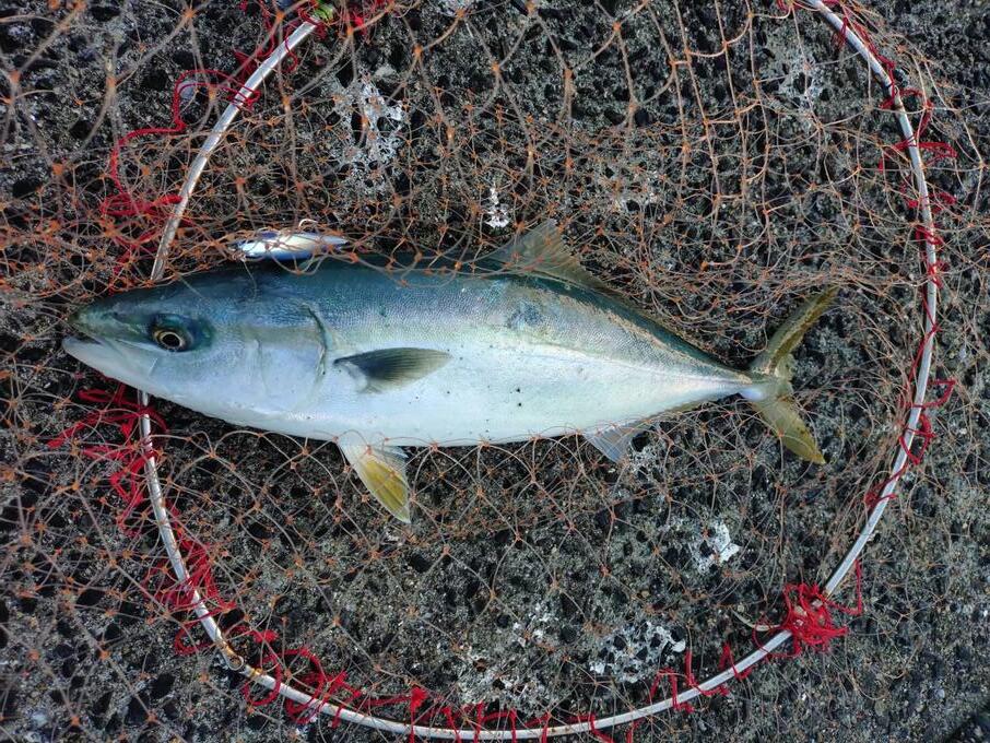 朝一番に山口県柳井市一文字波止場でナブラ確認後すぐにモンスターショットケイビルメッキ65㎜を投げ込むと一投目で結果が出ました!!楽しい!!最高!!