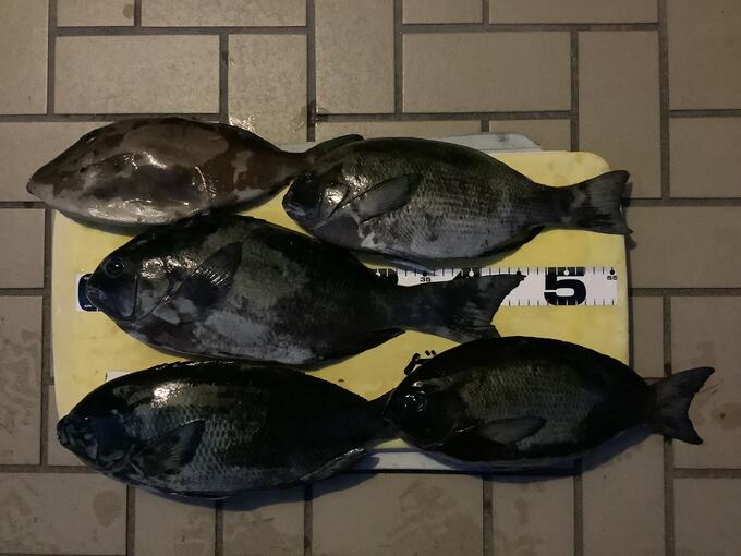 愛媛県佐田岬の地磯での釣果です。この地磯で釣るのも約一年振りですが、年々、背負子を背負って山を降りて行くのが辛い年齢になって来ました。それでも今日は、その疲れを吹き飛ばしてくれる様な釣果でした。一番大きいサイズが46.5㌢でしたが、相方の一番大きいのは49.5㌢でした。地磯でこれだけ大きなグレが釣れれば言う事無しです。