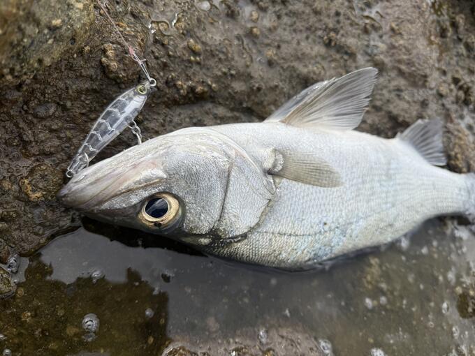 ミノーで反応がなくなったらやっぱりフォローはシンキングペンシル! 風が強いのでレンジキープしやすいヘビーショットで魚がきました!