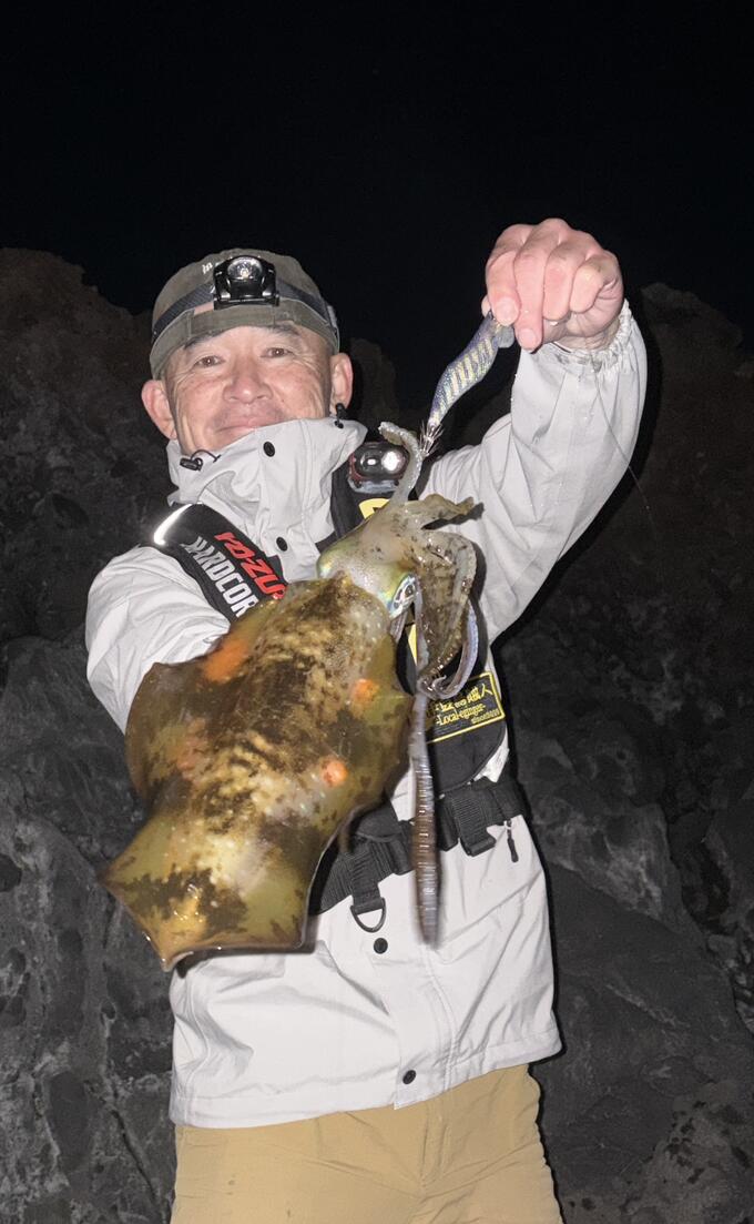 月が上がり、水面を照らし出したので、ケイムラ系一択に!7回シャクリテンションフォール!「コツン!」と前当たり!そのままフォールさせ、3回シャクリあげて!どん!気持ちよかった!