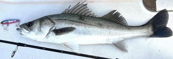 ソニックブームSBショット75Sをお初の実戦投入! めっちゃ飛んで、意外と引き抵抗も程よくあり驚き!! さらに驚いたのは、その集魚力。 やたらアタリが連発するも、このサイズは水面下をテレテレ引くカタチになるため、最初はどうせサワラだろうと合わせないで、敢えてスカしてやってたものの、カケてみればすべて良型シーバスだったという、これまたウレシイ驚きでした。 正になんたるヒットルアー降臨か!というカンジでしたよ