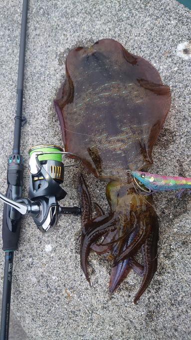 釣れたイカの墨で散ってしまいキャスト方向を変えて追尾してきたのをサイトで釣った一杯