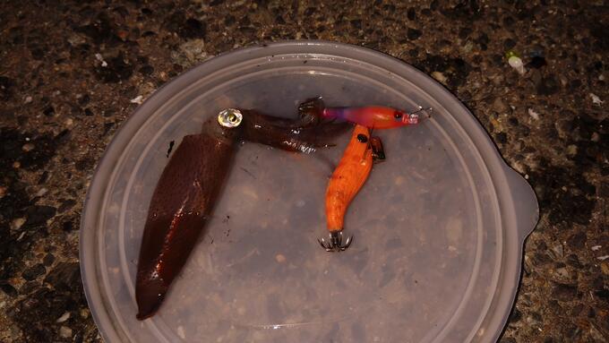常夜灯の明かりにフィッシュイーターが寄らないからか、表層〜宙層で釣れてくれます。 ボトムを取ると高確率で根掛かりしてエギやスッテを大量ロストToT