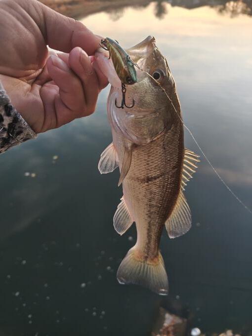 出張先での癒しの野池!サイズこそ小さいけどバスはバスで水深とトレースコースをキッチリ狙わないと無の時間が……。ちょっと沖の護岸終わりとブレイクラインがぶつかるピンスポットに溜まってるがなかなか口を使わないバスにラトゥールバイブ40Sのフォーリングでアプローチ!65S、55S譲りのシミーフォールで冬の定番メタルバイブに追い付けない個体にも口を使わせて冬にも関わらず一投1匹のハイペースで2桁越え!寒いけど熱い釣りになりました!