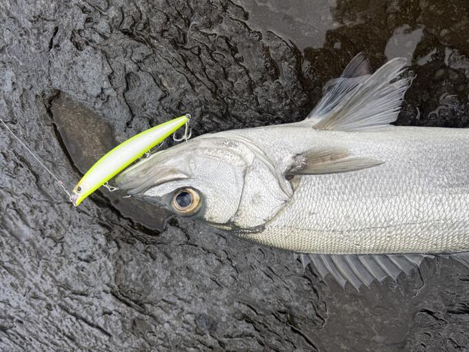 雪混じりの霰の中初釣り! 前が見えない中長年使ったシャローランナーを手の感覚を頼りに適正スピードで巻いてくるとヒット!