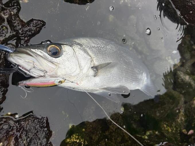 水温低下で活性が低いのでデッドスローリトリーブでサラシの中を引いてくるとヒットしました!