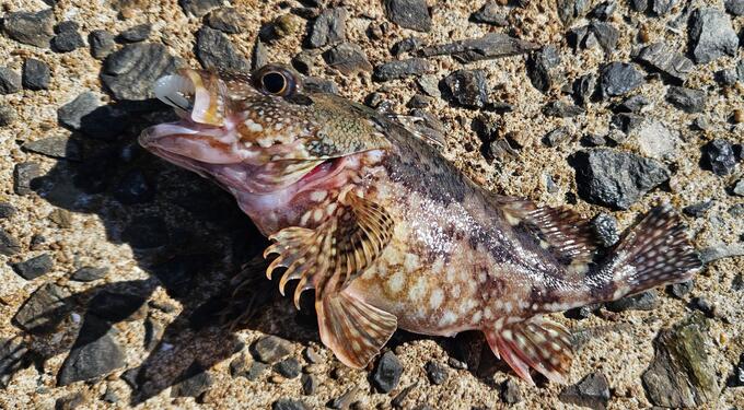 デイアジングでしたが、今シーズンはアジの接岸が遅れている模様で激渋なので、ラインはアーマード、リーダーはH.D.カーボンEX ショックリーダーの高感度を信頼して、ボトムをじっくり攻めると、快調にカサゴが連発ヒットしてくれました。