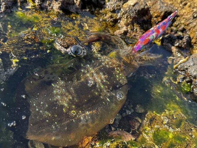 反応が薄くなったタイミングでラインスラッグとアオリーQスローを組み合わせてスローにスローに攻めるとラインを持っていかれてキャッチ!!
