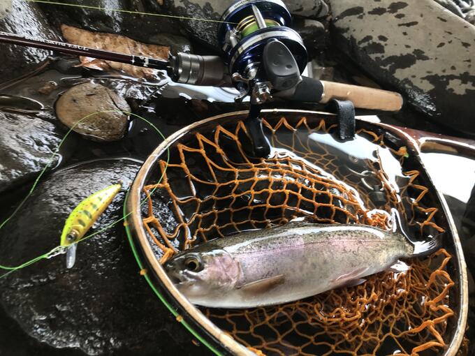 天気が良く気温も上がり、もしかしたらと行きましたが、活性が低く、信用しているheavy twitch50sゴールドヤマメをとにかくキャストして、なんとかキャッチ出来た1尾です