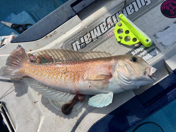 千葉県館山湾シロアマダイを狙う!開始から一発目で本命が出た^ ^ しかしその他は船中イトヨリのみでカミナリイカに移動!ダウンショット ウルトラスッテ布巻きピンクでカミナリカをキャッチ!その後ティップランで一尾追加にて竿納めとなる。
