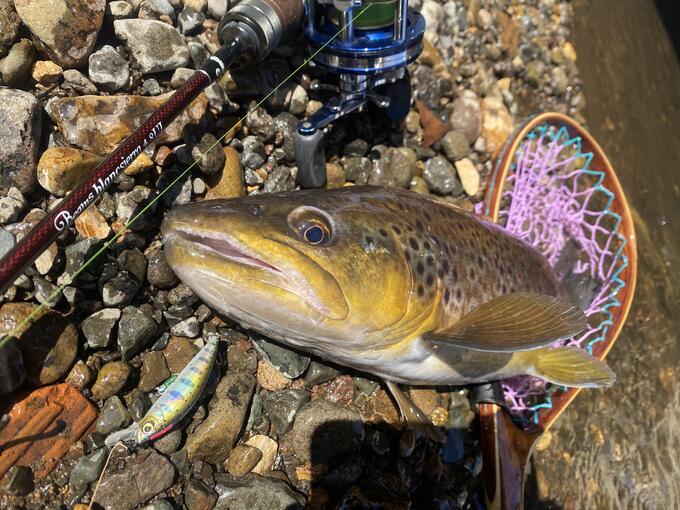 今日は近所の住宅街と幹線道路付近の川へ ルアーはheavy twitch50s マッドヤマメ 現場着いて1投目で護岸と護岸横から生えているちょっとした草の陰からメチャクチャ元気に飛び出してきました。 多分捕食では無く威嚇かなぁ、、、 慎重に、じっくり魚のパワーや走りを楽しみながら 無事キャッチ出来ました 筋肉質でパンパン 顔も中々なイケ加減でした