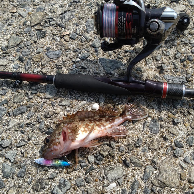 アオリの反応がなくなったところで、ジグのリフト&フォールで足元の石積を探るとヒット♪