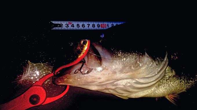 雨の影響か水が濁っていたので、バイブレーションのリフト&フォールのリアクションで反応するのでは?と思い、ハードコアXXバイブで探ると…グゥイーンと大きなアタリ!で、56㎝のビッグバスをGET♪ リリース後、同じ場所&同じアクションで、55㎝のバスを連続GET♪ビッグバスの連続ヒットで楽しい釣行となった。