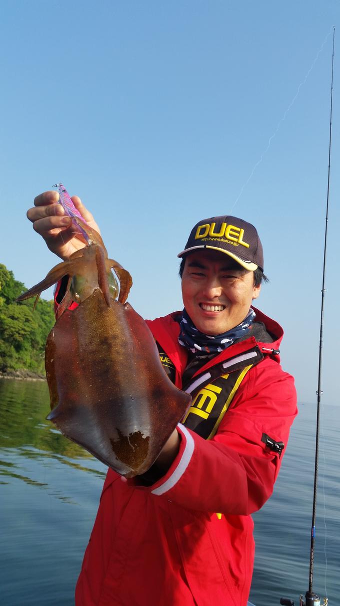 福井県は小浜周辺でボートエギングをしてしました。水深5m前後の藻場で、幸先良く700g程のアオリイカGET♪(HITパターン=トゥイッチ4回+テンションフォール、エギ=EZ-Qキャストラトル3.5号)同ポイントで900gのアオリを追加に成功♪(HITパターン=強めのショートピッチジャーク2回+テンションフォール、エギ=パタパタQスロー3.5号)潮止まりでアタリが遠退いたので、他魚種で遊び、夕方前に再びエギングを再開。水深3m前後のシャローの藻場で釣れたのは、その日最大の1.2kgのアオリ!このアオリを最後に納竿した。
