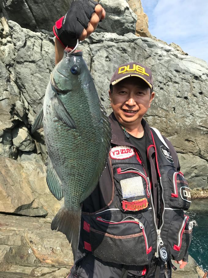 平日に休みが取れ、釣友の帆足さんと五島へクロ狙いで釣行。午前1時に瀬に上がり、帆足さんは早速カゴ釣り仕掛けを作り釣り開始。私は仕事疲れもあり仮眠を取っていると、1時間ほど経った頃、帆足さんからイサキが釣れていると聞き、私も急いで夜釣りのフカセ仕掛けを準備する。その後は2人で交互に竿を曲げ、夜明けまでイサキの入れ食いを堪能。明るくなると一旦イサキの食いも途切れたが、潮の流れが良くなると再びイサキがアタリだす。肝心のクロの食いはイマイチだが、仕掛けをしっかり張ってイサキの上のタナを狙うとクロがポツリポツリながらヒットしてくる。今回はオナガの釣果はなかったが、クチブト45センチをアタマに、クロ、イサキ共に数釣れて2人共楽しめた釣行であった。