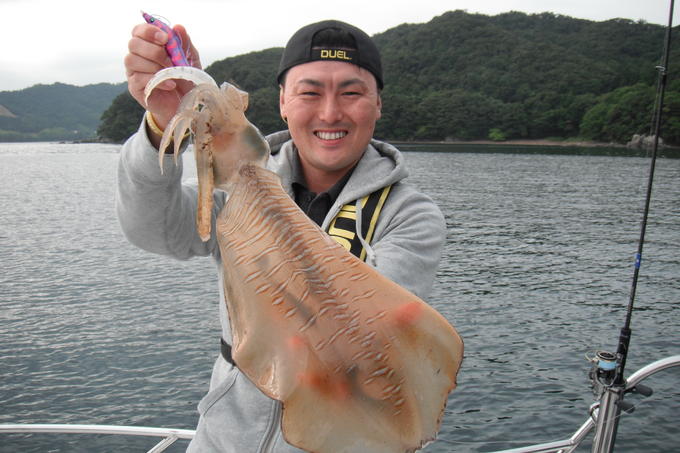 福井県は小浜周辺でボートエギングをしてしました。この時期のセオリーに藻場を攻め、朝一に1.3kgのアオリイカGET♪(HITパターン=トゥイッチ3回+テンションフォール、エギ=EZ-Qキャストラトル3.5号) 朝一に簡単に釣れたので、爆釣モードか!?と思われたが…この日のアオリイカはこの一杯のみで納竿となった。