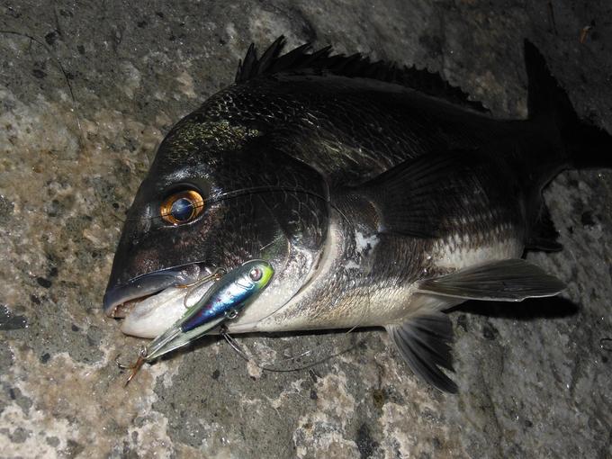 夏と言えばチヌゲ~です!!連日35度超えで毎日うだる様な暑さの山陰ですが、暑くなればなるほど良くなる山陰のチヌ。一昨年からチヌゲ~で使い始めたアーマードバイブ55!!境水道の下げ潮が速い時は他のルアーとラインではチヌが食うボトムノック感を維持する事が難しかったのですが、表面抵抗の少ないメインラインのアーマードF+Pro1号とボトムノックセンサー搭載のアーマードバイブ55はちょうどチヌが食うノック感を再現しやすい!!アップ気味に投げ、ボトムを取り、コツコツとボトムに流しつつダウンに入った所で「コン、コン、コン」と前アタリがあり、その後一気に「ドン!!」とコンディション抜群ブリブリの山陰チヌをゲット!!気難しい山陰のチヌですがアーマードバイブ55は素直に反応してくれました!!