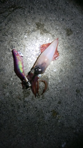 実に約2か月ぶりの久々エギング。台風後あまり状況のよさそうではないケンサキイカを狙いに夜から出陣。予想通り明確な時合はなく、30分から1時間ごとにポロッポロッと釣れるという感じで疲れました。。。