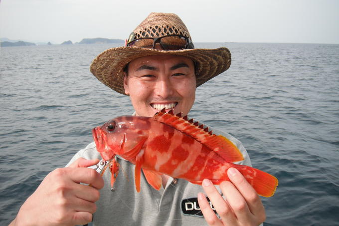 先日、和歌山は那智勝浦沖にロックフィッシュ釣行に行ってきました。先ずはソルティーベイトで探ると…ココン!と小気味いいアタリ!!にグッと合わせを入れHIT!で、オオモンハタGET♪同じパターンでアカハタ&カサゴをGET。さい先良くロック3匹目GETです。その後、サイズが伸びないのでポイント移動…するが…アタリ無し。ルアーをソルティーラバーキャストに変え、着底→少し巻くを繰り返していると…ゴゴッ!?と大きなアタリ!で30㎝程のアカハタGET♪その後もポツポツと釣れて続けた。