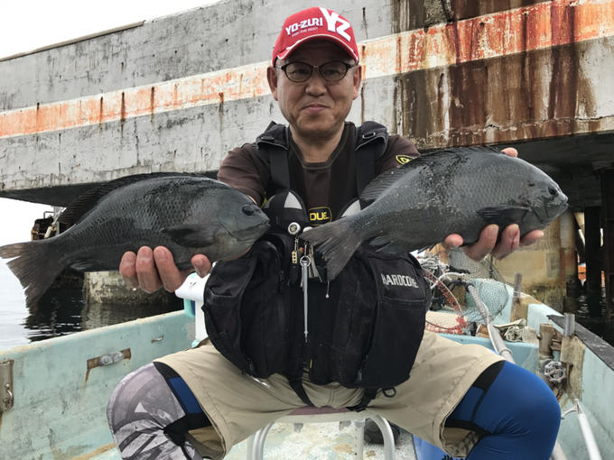 一ヶ月ぶりにホームグラウンドの千黒鯛丸に行ってきました。予想に反して凄い数の餌取りです。前回には居なかったカゴカキダイの幼魚と10センチほどのサンバソウです。厄介な口ばしを持っているので硬い餌でも一溜まりもありません。しかし撒き餌の打つ場所と仕掛け投入位置をずらして何とか写真のグレを7匹釣ることが出来ました。サイズは、33センチです。ちなみにさし餌は、ボケを使いました。