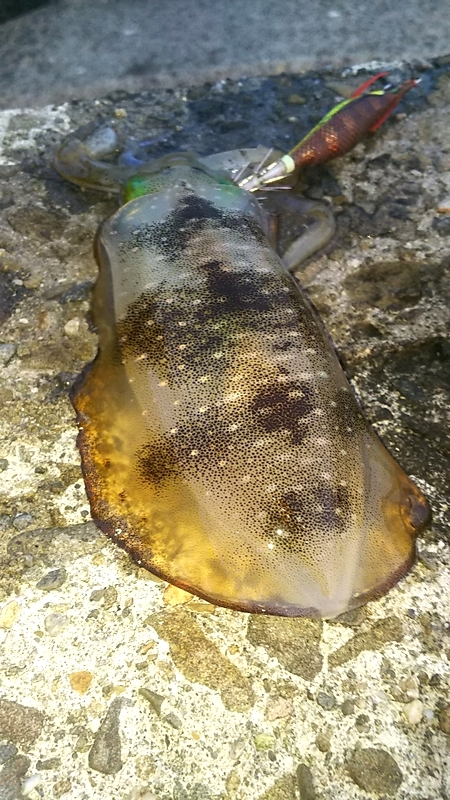 台風前に、連日の仕事帰りエギングへ(笑) 前日より渋い状況。追いかけてくる固体はいたので、こんな時はパタパタでスローに。 ゲソカットとかありましたが(笑) 前日よりサイズUPの140gでした。
