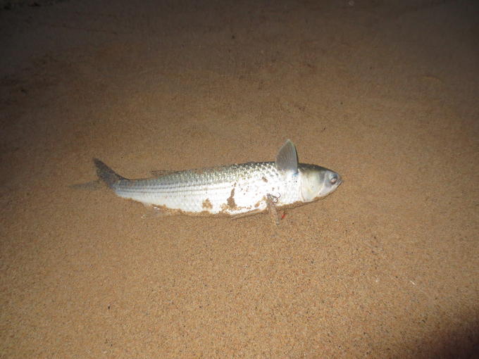 番外ですが、あまりにでかかったので写真撮りました。おそらく60を越えていたんじゃないかと・・・。やたらドラグ出すと思えば重いだけで動かなくなったりと小さいエイかと思いきや巨ボラでした。まいった。
