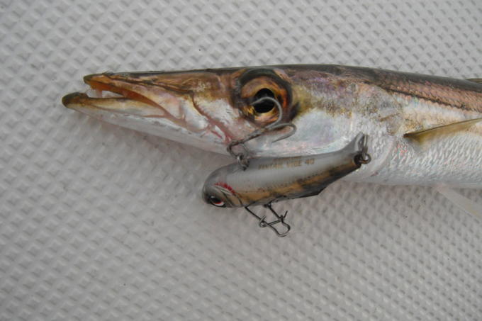 福井県は小浜周辺でボートエギングの合間にカマスを釣りました。 バイブレーションのリフト&フォールで25cm程のカマスGET♪ 当分のオカズを釣りエギングに戻りました。
