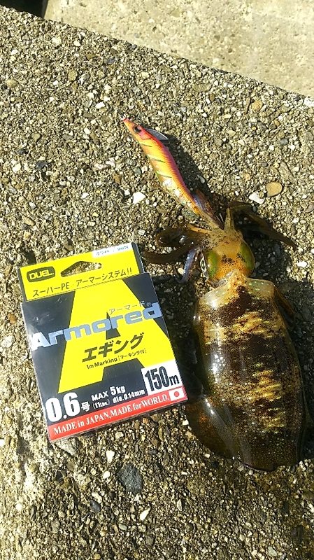 潮が動かない中のデイエギング。 渋かったですが・・・何とかシーズンイチのサイズを引きずり出しました! 下地が赤テープで、デーエギングよりナイトエギングでよく利用しますが。 渋くて釣れない中、既成概念にとらわれずに、色々と試してみると・・・意外な結果が出るかも?