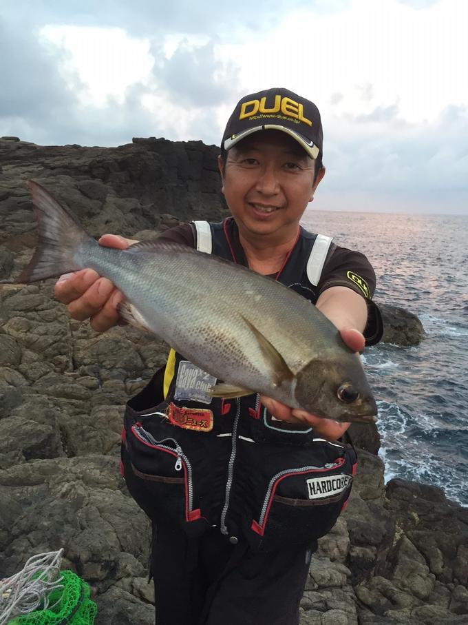 釣友の吉原さんと久しぶりに五島宇久島へと夜釣りメインで釣行。夕マズメは足の裏級のオナガが入れ食いになったが、サイズアップしないまま夜釣りに突入。暗くなると10センチ級のアジゴが連発でヒットし、潮が動いて手応えの良い魚がヒットしたかと思ったらイスズミの35センチ級。それでも辛抱して竿を振り続け、何とか竿2本のタナで本命魚であるイサキ36センチを2匹釣り上げる事に成功。今回は残念な釣果だったが、秋磯に期待したい。